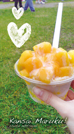 どっかのラジオ局が出店してたマンゴーかき氷。このお店、確かなんばウォークにもあったなぁ。昔、食べたなぁ。とか昔の事を思い出しながらほおばる。うまーーー!(なんばウォーク「冰館」現在閉店してました^^;)