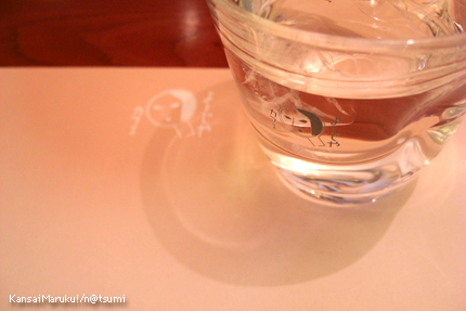 ランチョンマットも、おしぼりも、グラスもよーじやロゴが。