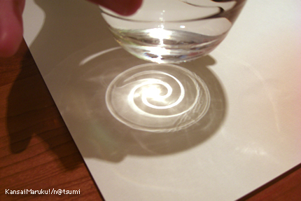 グラスの底がうずまき。少し浮かすとこんなに綺麗に。