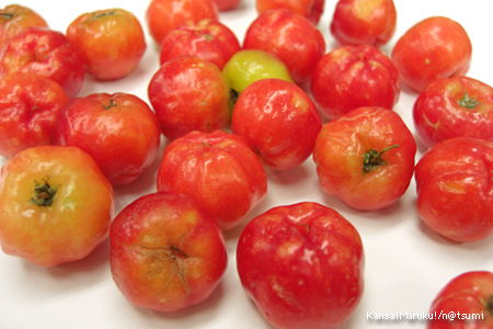 私の中で「アセロラ」はすっぱいイメージがあって、酸味が嫌いな私には大嫌いなもの。かじってみると、やはり酸っぱくて食べれたもんじゃありません。
