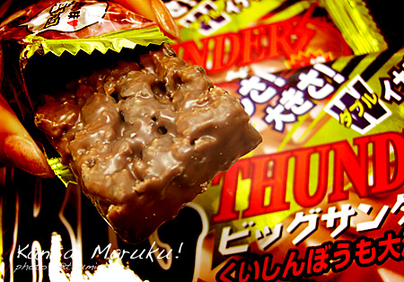 BIGサンダーはこれまた違う形をしていて、サクサク感がよりupしている感じ。うまいうまい。これくらいの薄さのほうが食べやすい!でもチョコは濃いですよんっ。