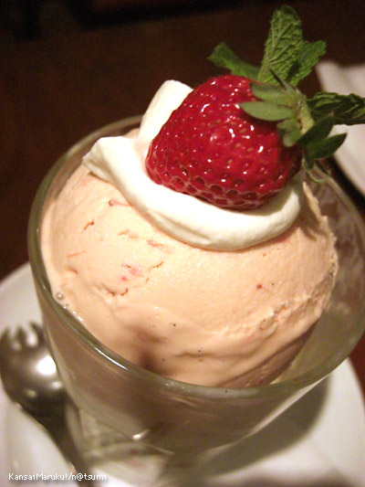 「コーンフレークとかでごまかしてない」上に苺のアイス、下にはバニラビーンズ入りのアイス+いちごが。ちょっと最近また寒かったので震えながら食べましたが、堪能できました♪
