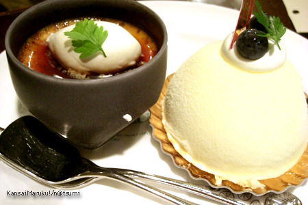 プリンとレアチーズケーキ。カラメル焼いてあってうまい。濃厚。