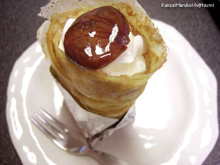 こちらは季節はずれの栗をクレープ生地でくるんだもの。