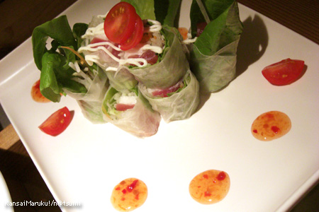 その他、チーズ盛り合わせ・伊賀牛の鉄板焼き・鮭茶漬け・まぐろと山芋の生春巻きを注文。気持ち良いくらい元気のいい店員さんが注文をくり返す。なんか前行ったときと雰囲気違う(笑