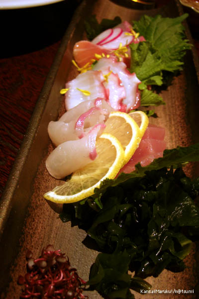 刺身も奮発して5種盛り。クリスマスと言うことでチキン(唐揚げやけど)も注文。