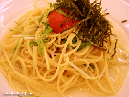 ジャコと水菜の和風スパゲティ梅しそ風味