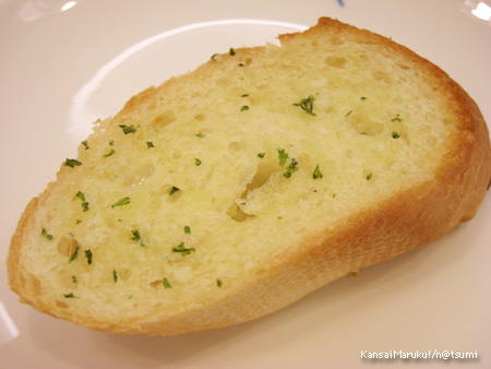 ペアセットをオーダー。(パンorガーリックトースト+お好きなサラダ1品+お好きなお料理2品+お好きなドリンク2品)2人で食べるならこれをお薦めします。ガーリックトーストも、ガーリックがとても効いていておいしかったです(2つ付いています)