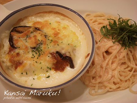 写真はドリア&パスタのセット。本日のドリアは、茄子のホワイトドリア。パスタは明太子。上に紫蘇がのってるんですがめっちゃ合うんですよー。量もちょうど良かったです。