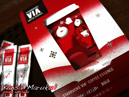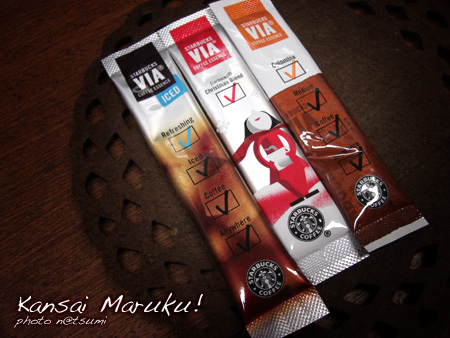 VIAは、コーヒーメーカーがなくてもお湯または水で溶ける、スタバコーヒーが手軽に身近に味わえる商品です。12本入り1,000円とお買い得。まず試したい方は3本入りがオススメ。こちらは店舗により売り切れる場合があるのでお早めに^^